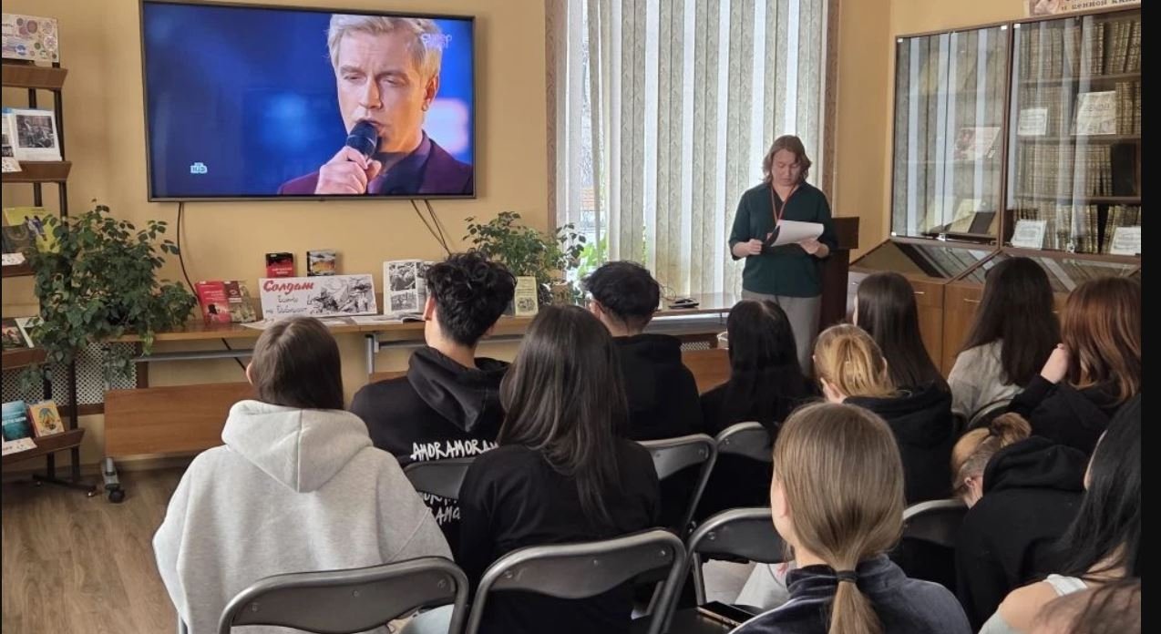 В центральной библиотеке прошел информационный час, посвященный Дню памяти о россиянах, отдавших жизнь за пределами отечества. Ежегодно 15 февраля в России отмечается День памяти граждан, исполнявших воинский долг за границами страны. В эту памятную дату в Центральной городской библиотеке Уссурийска был проведен информчас "Солдат войны не выбирает" (12+), адресованный учащимся Уссурийского колледжа технологии и управления. Об этом информирует "UssurMedia.ru".