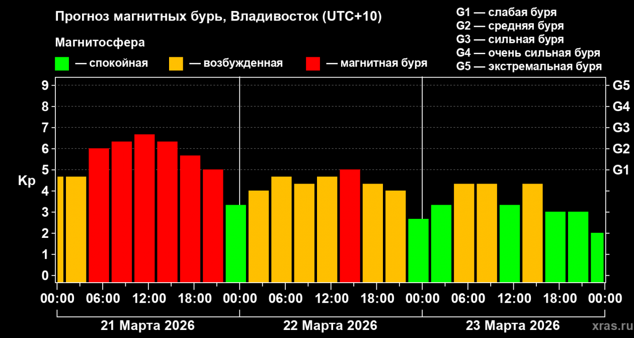 Напомним, 21 января произошла мощная буря. Тогда геомагнитная активность усилилась, а планетарный индекс Kp достиг уровня G3.7. Во Владивостоке была зафиксирована сильная магнитная буря, оцениваемая в G3.3.
